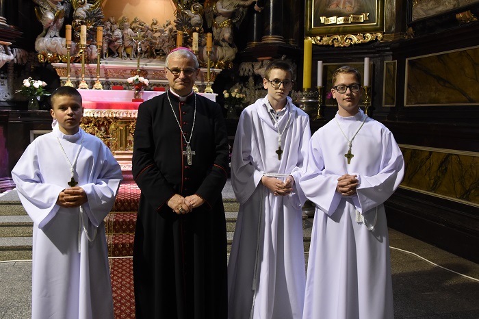 W sobotę 13 czerwca trzej młodzieńcy z naszej parafii: Filip, Kasper i Staszek otrzymali podczas Mszy Świętej o godzinie 12:00 w Katedrze świdnickiej błogosławieństwo z rąk Księdza Biskupa Marka Mendyka do pełnienia posługi lektorskiej.